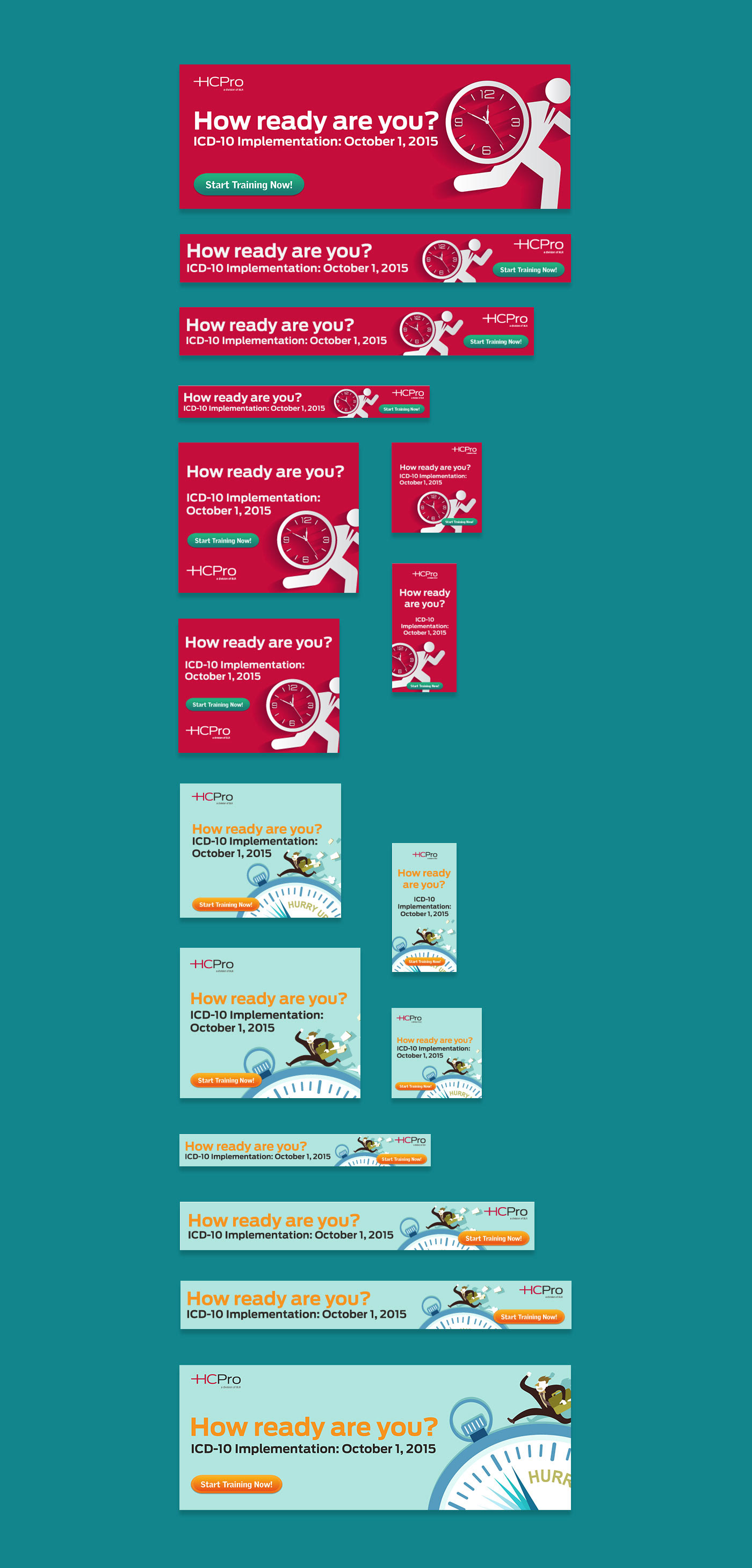 Banner ad sets promoting the implementation of ICD-10 in healthcare.
